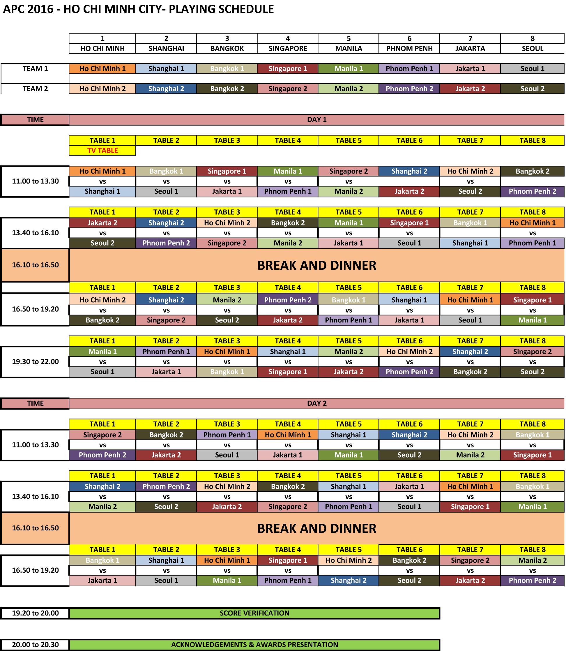 2016 Ho Chi Minh APC – TEAM COMPETITION SCHEDULE – 2 and 3 SEPTEMBER 2016 ImageAugust 1, 2016August 1, 2016 AdminLeave a comment Share this: Click to share on X (Opens in new window) X Click to share on Facebook (Opens in new window) Facebook Like Loading... Related