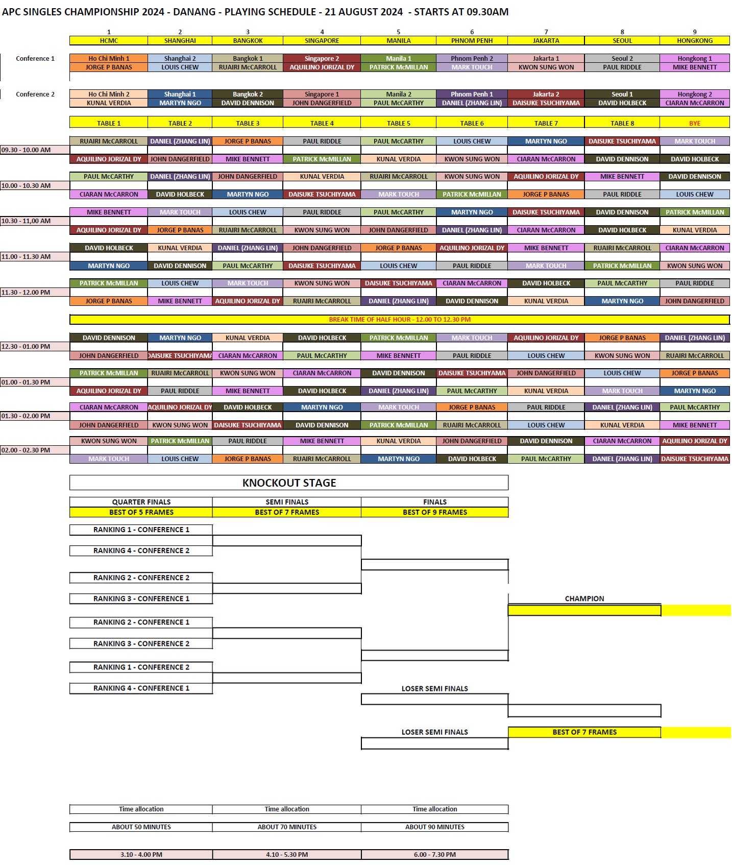 Here are the schedules for the Singles and Teams competitions. For those who won’t be able to attend live, don’t worry you will be able to watch the matches on our TV table #1 live streamed from the comfort of your home, or even better with your friends at your local bar (participating bars list coming soon).